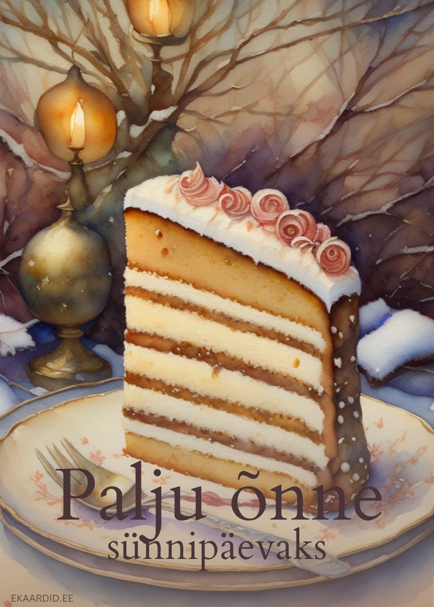 See on ideaalne Sünnipäevakaart tordisõbrale. Kaardil on kujutatud isuäratav tordilõik ja küünal, mis loovad piduliku meeleolu.