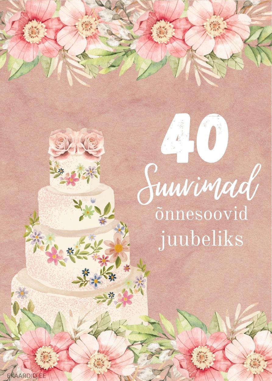 See on suurepärane juubelikaart 40. sünnipäevaks. Kaardi kaunistavad õrnad lilled ja pidulik kook. Soovi oma lähedasele palju õnne selle kauni kaardiga.