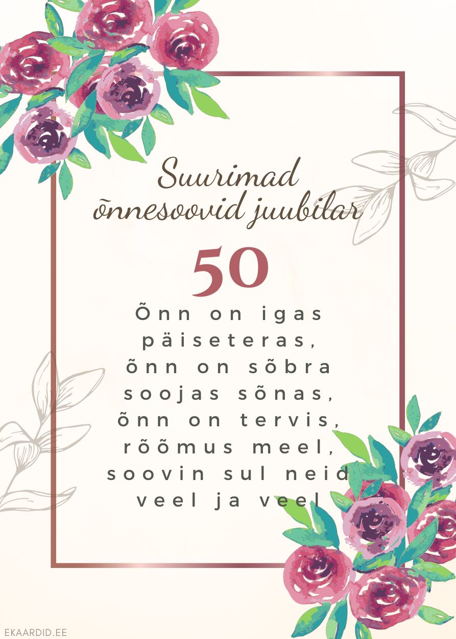 See on kaunis juubelikaart, mis on kaunistatud roosade lilledega. Ideaalne 50. juubeli tähistamiseks.