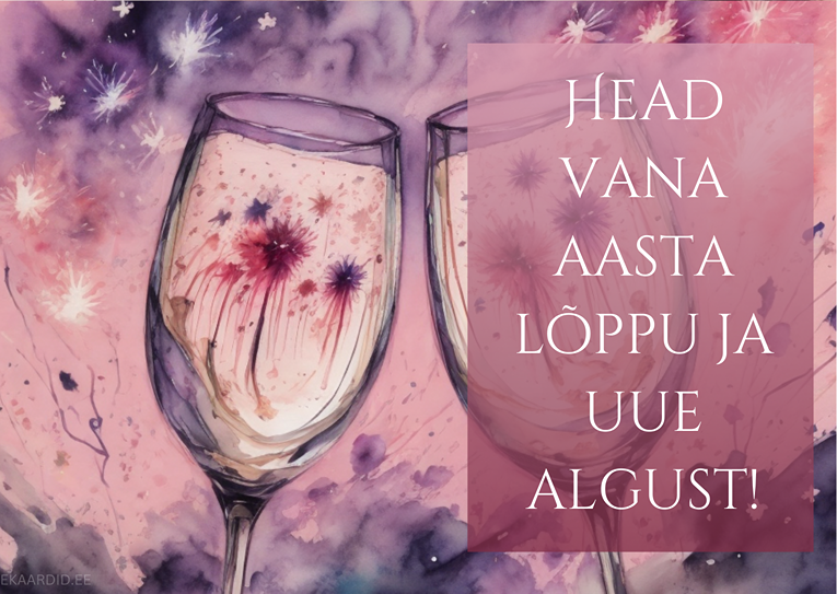 Soovi oma lähedastele õnnelikku uut aastat selle kauni aastavahetuse kaardiga, millel on kujutatud šampanjaklaase ja ilutulestikku. See on ideaalne kaart aastavahetuse puhul.