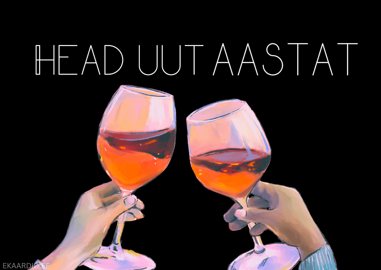 Soovi head uut aastat selle elegantse aastavahetuse kaardiga, millel on kujutatud kaks veiniroosi. Ideaalne kaart sõpradele ja perele.