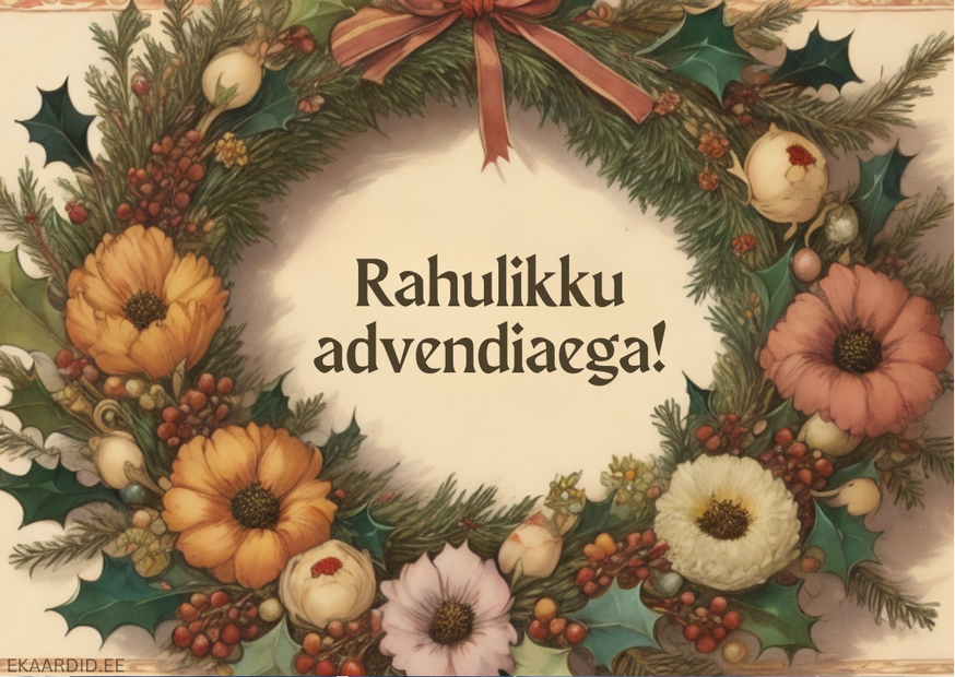 Soovi oma lähedastele rahulikku advendiaega selle kauni advendipärjaga kaardiga. Ideaalne jõulukingituskaart.
