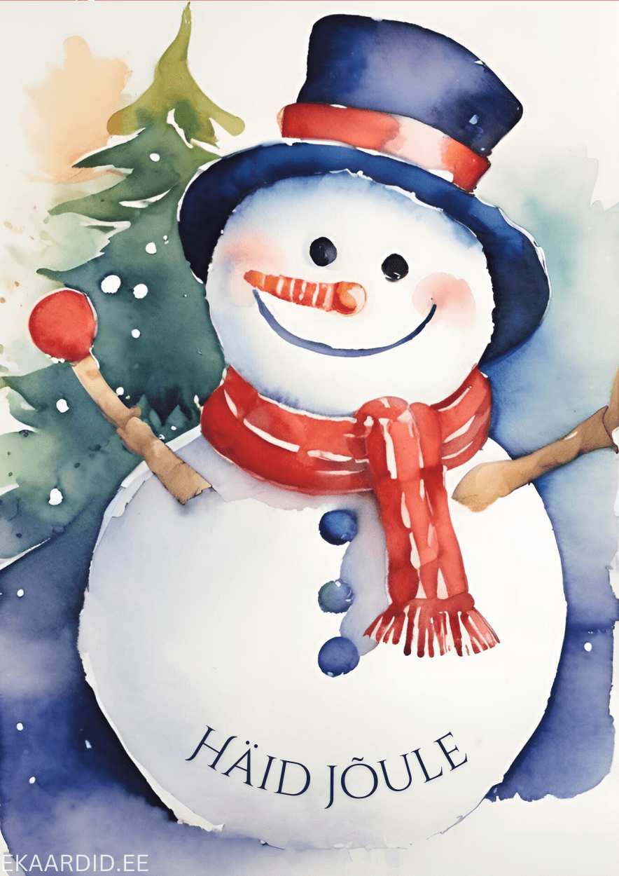 Sooja ja südamlikku jõulutervitust edastav akvarell-stiilis jõulukaart lumememmega. See on ideaalne jõulukaart lähedastele ja sõpradele.