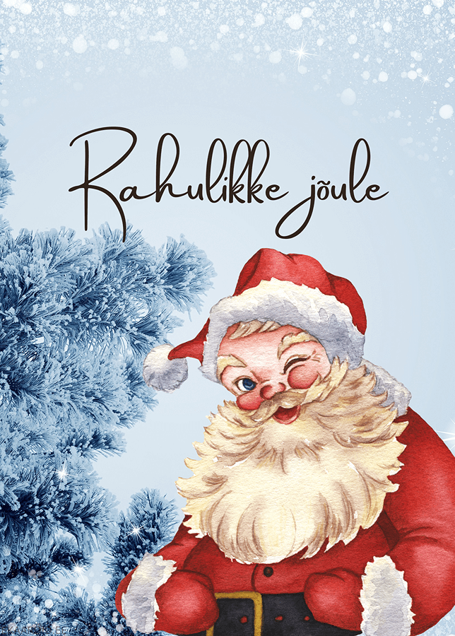 Soovi oma lähedastele rahulikke jõule selle armsa akvarell-stiilis jõulukaardiga, kus pilgutab rõõmsameelne jõuluvana. See on ideaalne jõulukaart perele ja sõpradele.