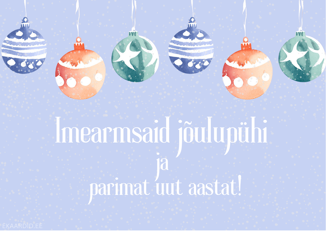 Akvarell-jõulukuulid jõulukaardil