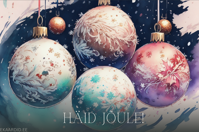 Soojad ja soovid täis jõulukaart, mis on kaunistatud akvarell-tehnikas maalitud jõulukuulidega. Ideaalne jõulukingitus lähedastele.