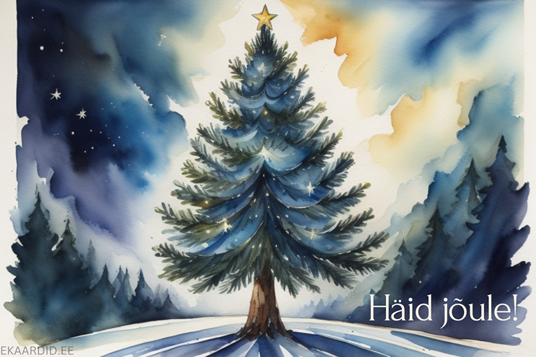 Akvarell-jõulukuusk jõulukaardil