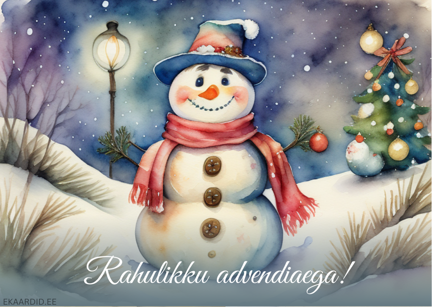Sooja ja hubast advendiaega! See akvarell-stiilis lumememme kaart toob teie kodusse jõulumeeleolu. Ideaalne advendikaart lähedastele.