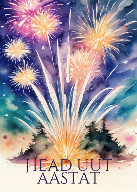 Soovi oma lähedastele head uut aastat selle kauni akvarell-stiilis ilutulestikuga kaardiga. See on ideaalne uusaasta kaart, mis toob kaasa piduliku meeleolu.