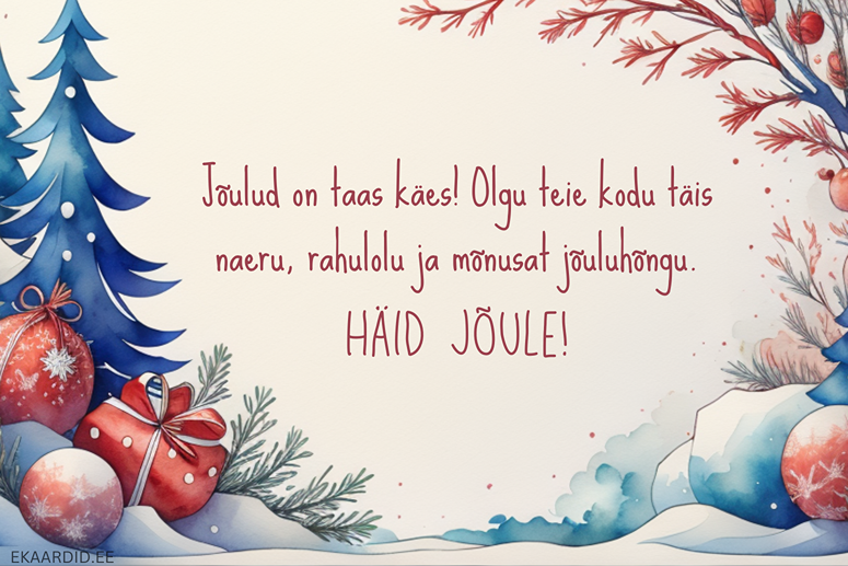 Soojad ja südamlikud jõulukaardid akvarell-stiilis kujundusega. See on ideaalne jõulukaart lähedastele ja sõpradele, täis sooje ja rahulolu täis jõulutunde.