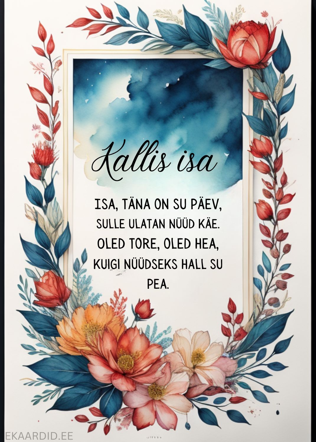 Soovi oma isale palju õnne selle kauni akvarell-stiilis lilledega Isadepäevakaardiga. See on ideaalne Isadepäevakaart, mis väljendab südamlikku lugupidamist ja armastust.