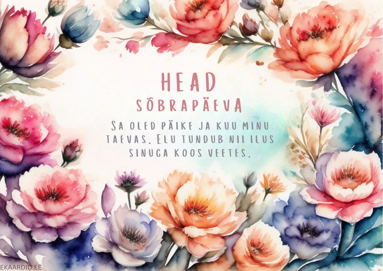 Soovi oma sõbrale ilusat sõbrapäeva selle kauni akvarell-stiilis lilledega kaardiga. See on ideaalne sõbrapäevakaart, mis väljendab sügavat sõprust.
