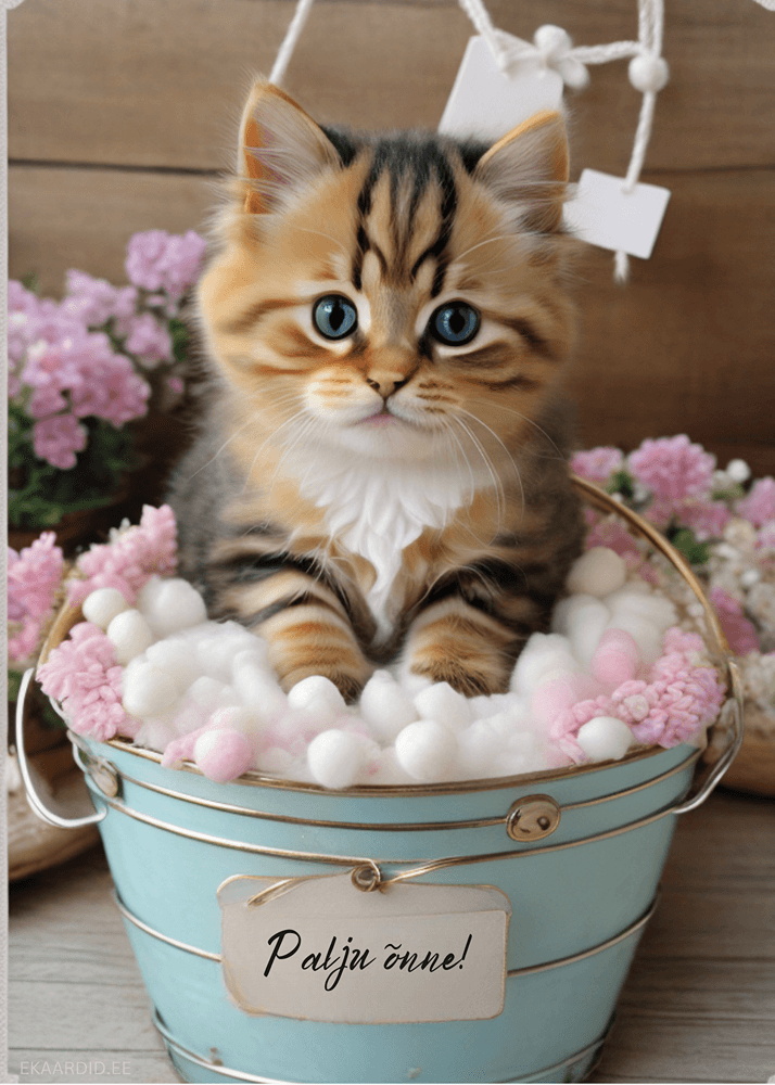 See armas kassipoeg soovib sulle palju õnne! See on ideaalne Sünnipäevakaart neile, kes armastavad loomi ja armsaid pilte.