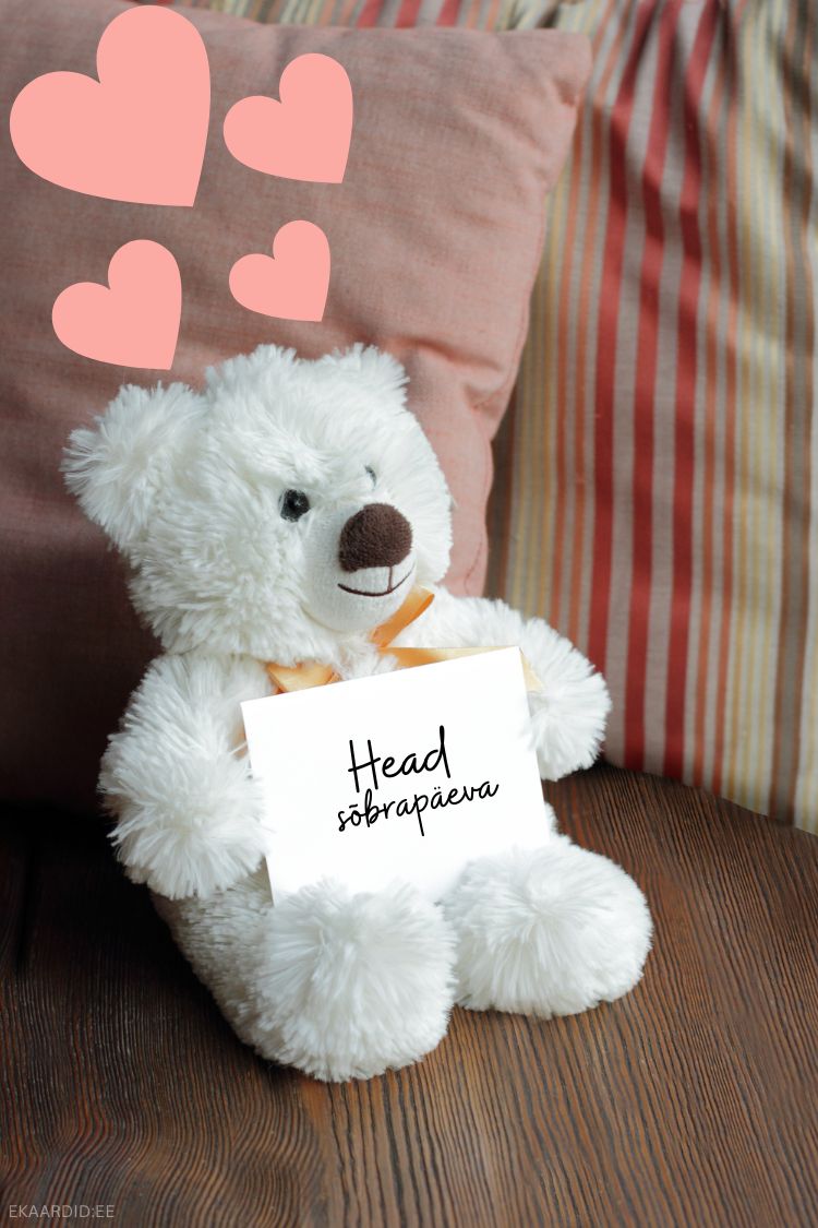 See armas sõbrapäevakaart on kaunistatud südametega ja armsa karuga. Ideaalne sõbrale või lähedasele sõbrapäeva puhul.