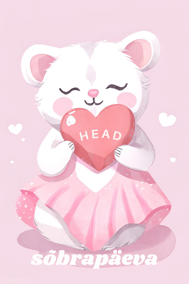 See armas Sõbrapäevakaart on ideaalne kingitus lähedasele sõbrale. Valge karu roosakas seelikus hoiab südant, millel on sõna "HEAD". Soovi oma sõbrale ilusat Sõbrapäeva!