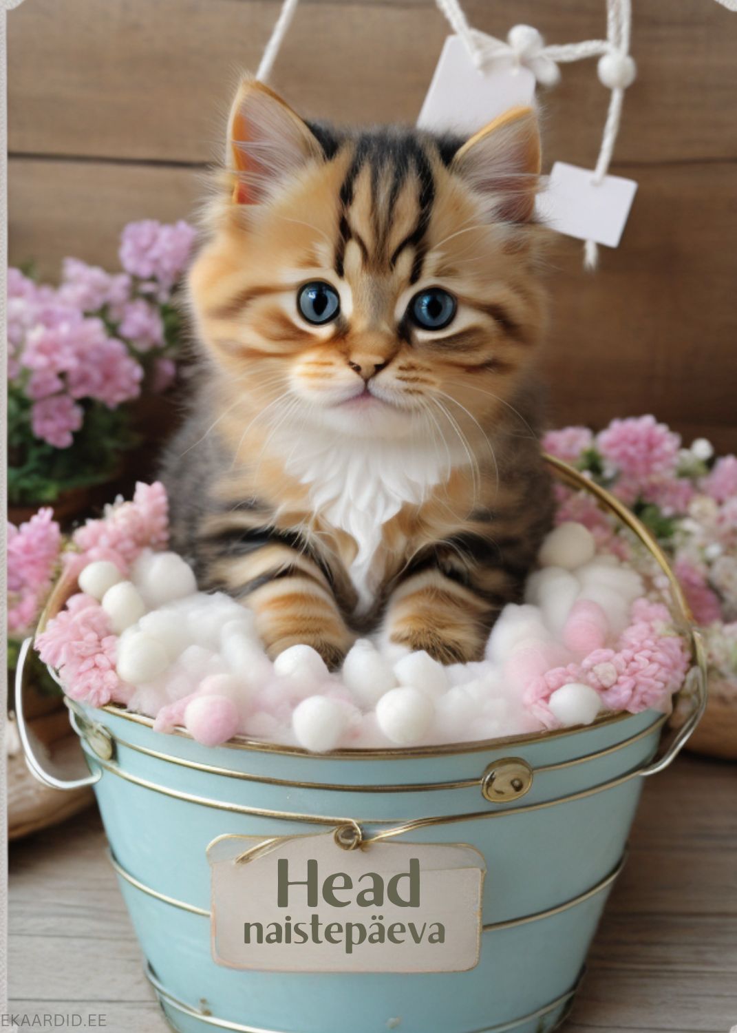 Soovi oma lähedastele naistele ilusat Naistepäeva selle armsa kassipojaga kaunistatud kaardiga. See on ideaalne Naistepäevakaart, mis toob naeratuse näole.
