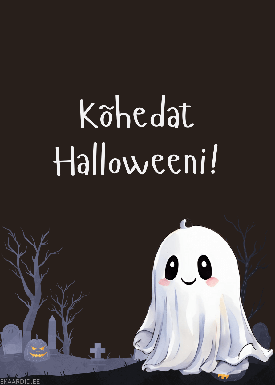 Soovi oma sõpradele ja perele õnnelikku Halloweeni selle armsa kummitusega kaardiga. Ideaalne Halloweeni tervituskaart.