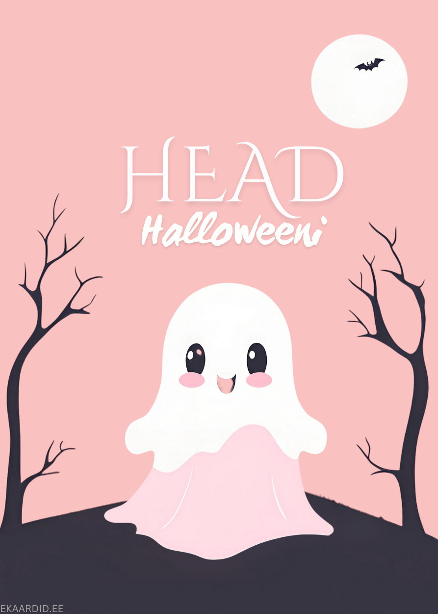 See armas Halloweeni kaart on täiuslik kingitus sõbrale või pereliikmele. Roosa toonides kummitus toob naeratuse igaühe näole. Ideaalne Halloweeni kaardiks.