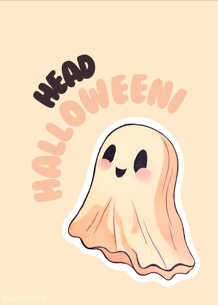 See on armas ja sõbralik Halloweeni kaart, millel on kujutatud armas väike kummitus. Ideaalne kaart Halloweeni puhul sõpradele ja perele.