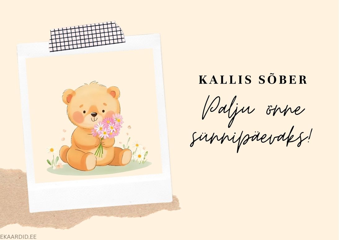 Soovi oma kallimale õnne sünnipäevaks selle armsa karu ja lilledega kauni sünnipäevakaardiga. See armas Sünnipäevakaart on ideaalne kingitus.