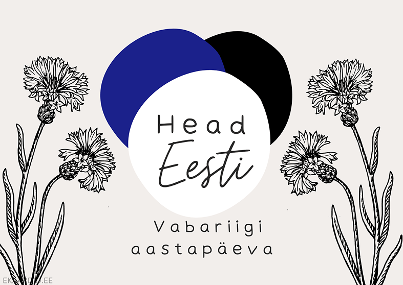 Eesti Vabariigi aastapäeva kaart siniste ja mustade ringidega