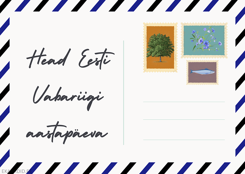 See on ideaalne postkaart Eesti Vabariigi aastapäeva tähistamiseks. Kaardil on kujutatud Eesti loodust ja sümboleid.