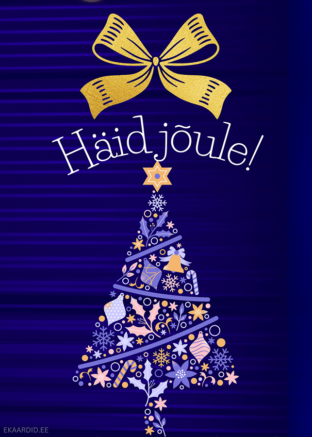 Soovi oma lähedastele rõõmsaid jõule selle elegantse jõulukaardiga, mis on kaunistatud kuldse paelaga ja lillemustriga jõulupuuga. See on ideaalne jõulukaart lähedastele ja sõpradele.