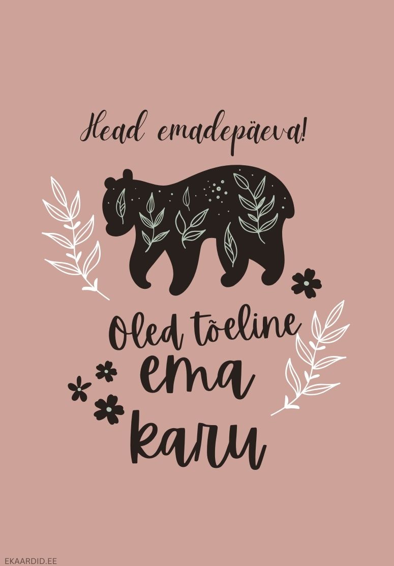 Soovi oma emale ilusat emadepäeva selle armsa karu motiiviga kaardiga. See kaart on täiuslik kingitus, mis väljendab sinu armastust ja tänulikkust. See on ideaalne tahtpaevad-emadepaev kaart.