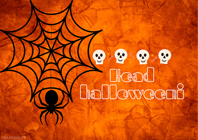 See on õudselt lahe Halloweeni kaart, mis on kaunistatud ämblikuvõrgu ja naljakate koljudega. Ideaalne Halloweeni õhtuks!