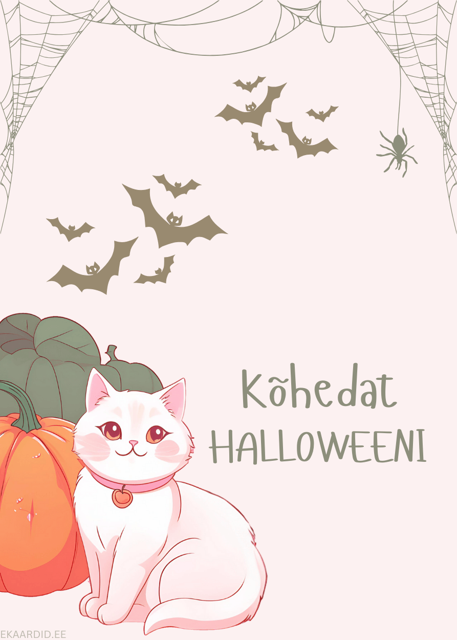 See armas Halloweeni kaart on kaunistatud armsa kassiga ja kõrvitsatega. See on ideaalne kaart Halloweeni puhul sõpradele ja perele soovide saatmiseks.