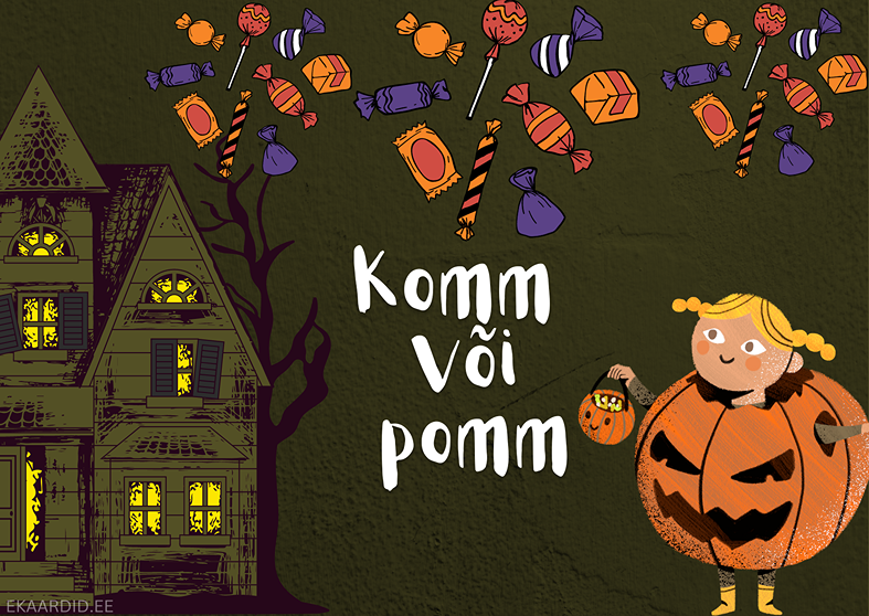 Halloweeni kaart kommivõi-pommiga