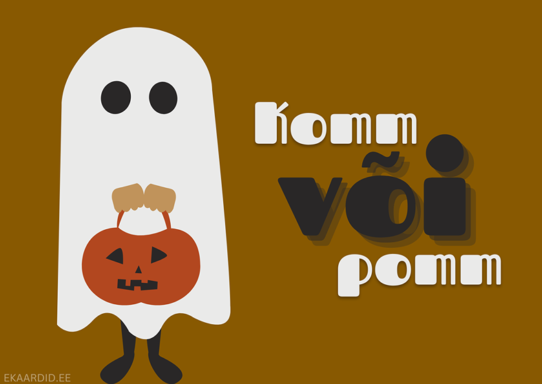 See on armas Halloweeni kaart, millel on kujutatud kummitus kõrvitsa laternaga. Ideaalne Halloweeni õhtuks!