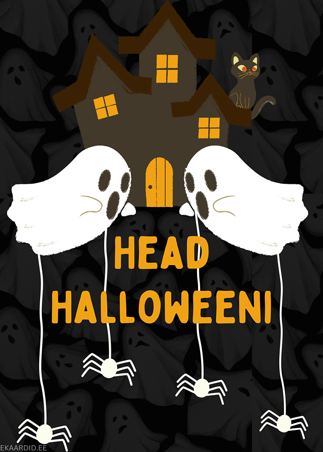 See on õudselt vahva Halloweeni kaart, mis on kaunistatud kummituste ja ämblikega. Saada see oma sõpradele ja perele!