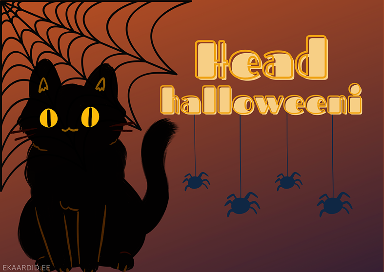 See on Halloweeni kaart, millel on armas must kass ja ämblikud. Saada see sõbrale või pereliikmele Halloweeni puhul.