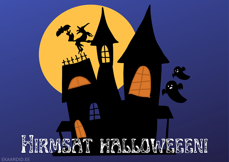 See on ideaalne Halloweeni kaart, mis kujutab kummituslossi ja lendavaid kummitusi. Saada see oma sõpradele ja perele!