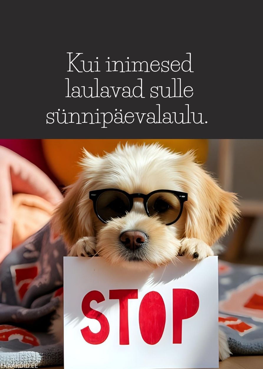 See humoorikas sünnipäevakaart koeraga toob naeratuse näole iga sünnipäevalapse. Saada see sõbrale, kes hindab head nalja!