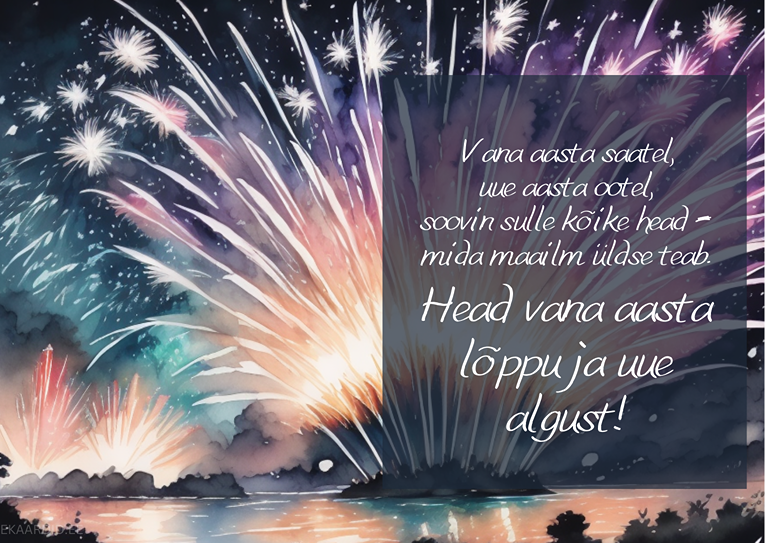Soovi lähedastele head uut aastat selle kauni ilutulestikuga kaardiga. See on ideaalne uusaasta kaart, mis toob kaasa soojad ja rõõmsad tervitused.