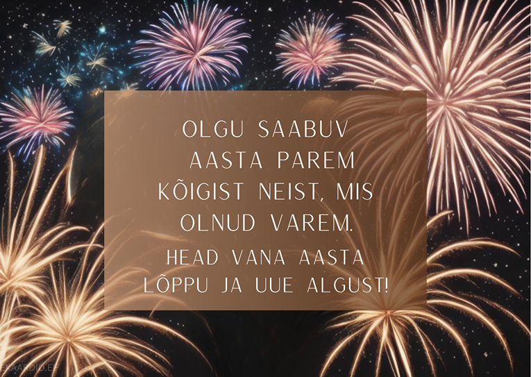 Soovi oma lähedastele head uut aastat selle kauni ilutulestikuga kaardiga. See on ideaalne tahtpaevad-aastavahetus kaart uue aasta alguse tähistamiseks.