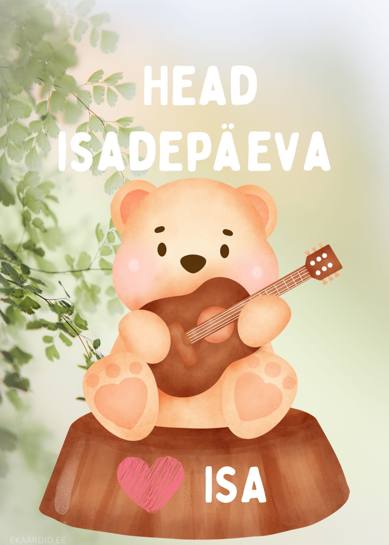 Sooja ja südamliku Isade päeva kaardiga saad oma isale näidata, kui väga sa teda armastad. Kaardil on armas karu, kes mängib kitarri. See on ideaalne tahtpäevakaart isadele.