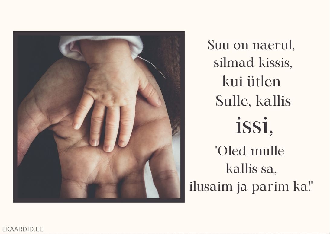Liigutav Isadepäeva kaart, mis kujutab lapse väikest kätt isa käel. See on ideaalne viis väljendada oma armastust ja tänu oma isale.
