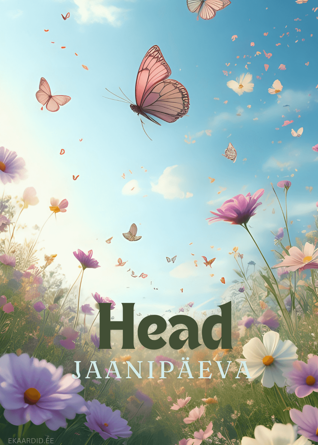 Jaanipäeva kaart liblikate ja lilledega