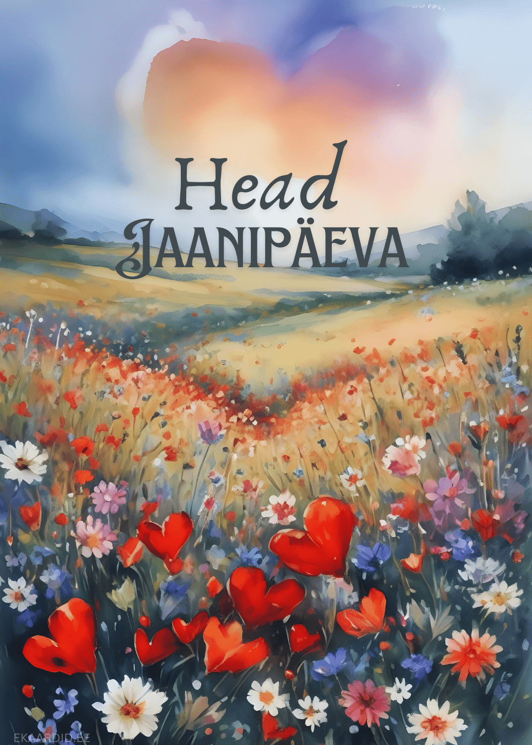Jaanipäeva kaart lilledega ja südametega
