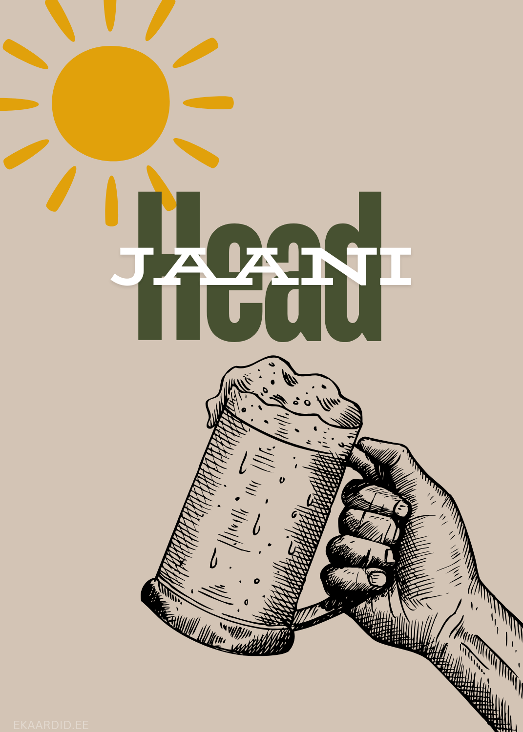 Soovi oma sõpradele ja perele head Jaanipäeva selle rõõmsa jaanipäeva kaardiga, millel on kujutatud päike ja õllekruus. See on ideaalne tahtpäeva kaart.