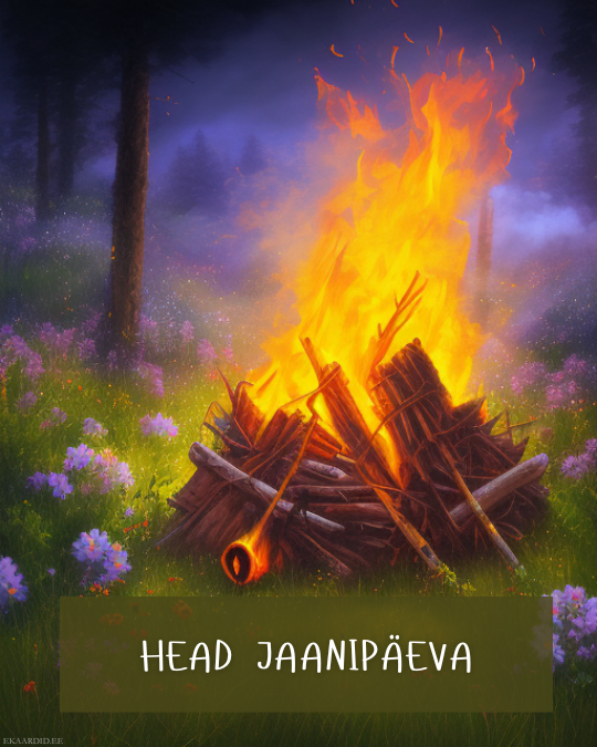 Soovi oma lähedastele ilusat jaanipäeva selle sooja ja hubase lõkkega kaardiga. Ideaalne kaart jaanipäeva tähistamiseks.