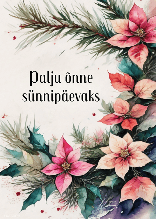 Soovi oma lähedasele palju õnne selle kauni jõulu lilledega sünnipäevakaardiga. See on ideaalne sünnipäevakaart, mis sobib eriti hästi talvisel ajal.