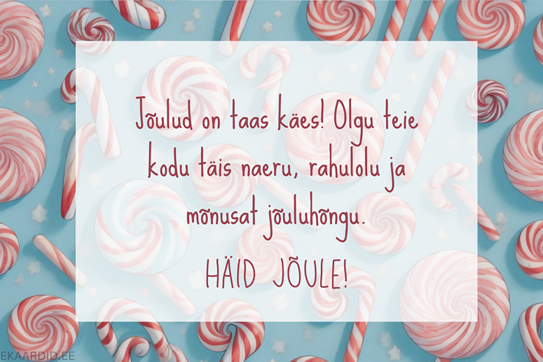 Soovi oma lähedastele rõõmsaid jõule selle armsa jõulukaardiga, mis on kaunistatud värvikirevate kommidega. See on ideaalne jõulukaart sõpradele ja perele.