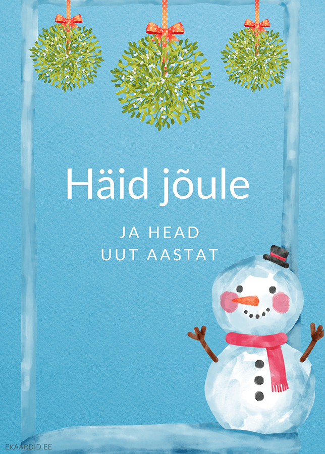 Soojad jõulutervitused! See kaart on kaunistatud armsa lumememme ja jõhvikaokstega. Ideaalne jõulukaardina lähedastele.