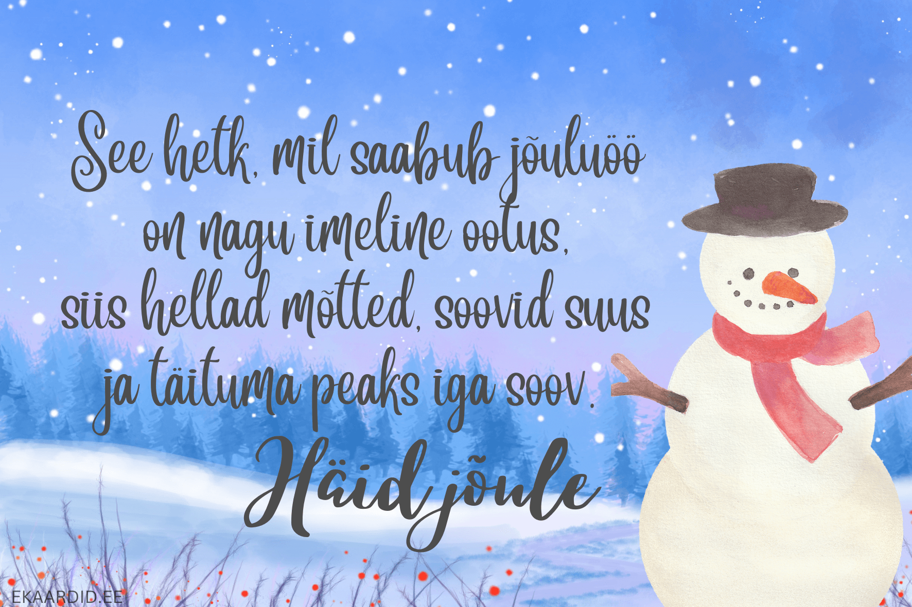 Jõulukaardid lumememme ja soovidega