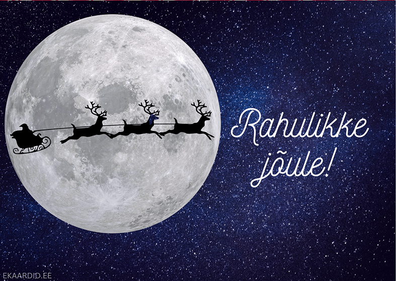 Soovi oma lähedastele rahulikke jõule selle kauni jõulukaardiga, kus on kujutatud täiskuu ja põhjapõtradega kelk. See on ideaalne jõulukaardid.