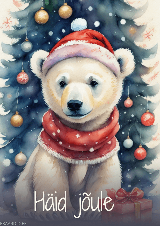 Jõulukaardil armas jääkaru